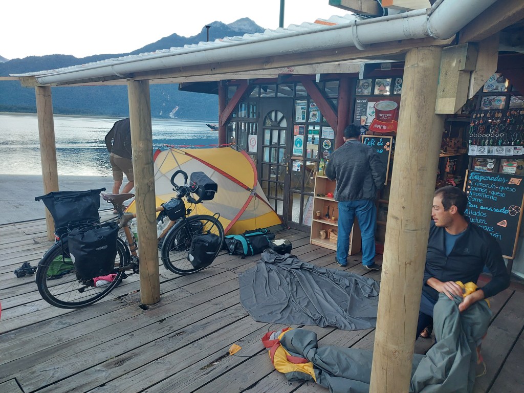 Au fur et à mesure que nous avançons vers le Sud, nous rencontrons de plus en plus de collègues cyclovoyageurs, qui sont quasi exclusivement de deux nationalités : chilienne ou française ! Si un jour, vous décidez de rouler sur un vélo trop chargé à l’autre bout du monde et de vivre une belle aventure comme la nôtre sur la Carretera Austral, des Parisiens rencontrés dans une échoppe locale vous diront certainement « Ouais, j’avais bien noté un petit accent ». Mais il faut bien avouer, accent ou pas, qu’il est plus facile de converser dans sa langue maternelle et nous partageons en riant toutes nos anecdotes de baroudage et nos bons plans pour la suite de nos voyages respectifs. De plus, comme finalement tout le monde avance à un rythme similaire, tous ces cyclovoyageurs se retrouvent souvent à l’attraction touristique ou au bar du coin et l’ambiance est très sympathique.