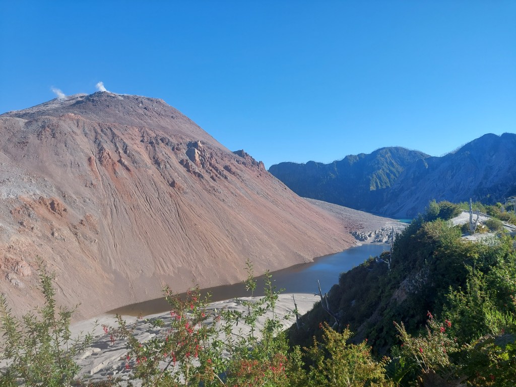 Nous échappons aux taons le temps d’une fin d’après-midi lorsque nous grimpons sur le volcan Chaiten; nous profitons alors d’une vue splendide sur la vallée toute verte que nous venons de traverser. En plus, nous sommes seuls sur le volcan et le temps est au beau fixe. Que demander de plus ?