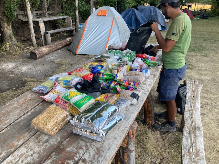 Le dernier quart de la route qui lie Cochrane à Villa O’Higgins est aussi le plus rustique: entre les deux villages, il n’y a pour ainsi dire vraiment rien. Pas la moindre petite épicerie ou restaurant sur les 250 km qui nous restent à avaler. Cela nous force à faire des provisions pour 5 jours au départ de Cochrane :