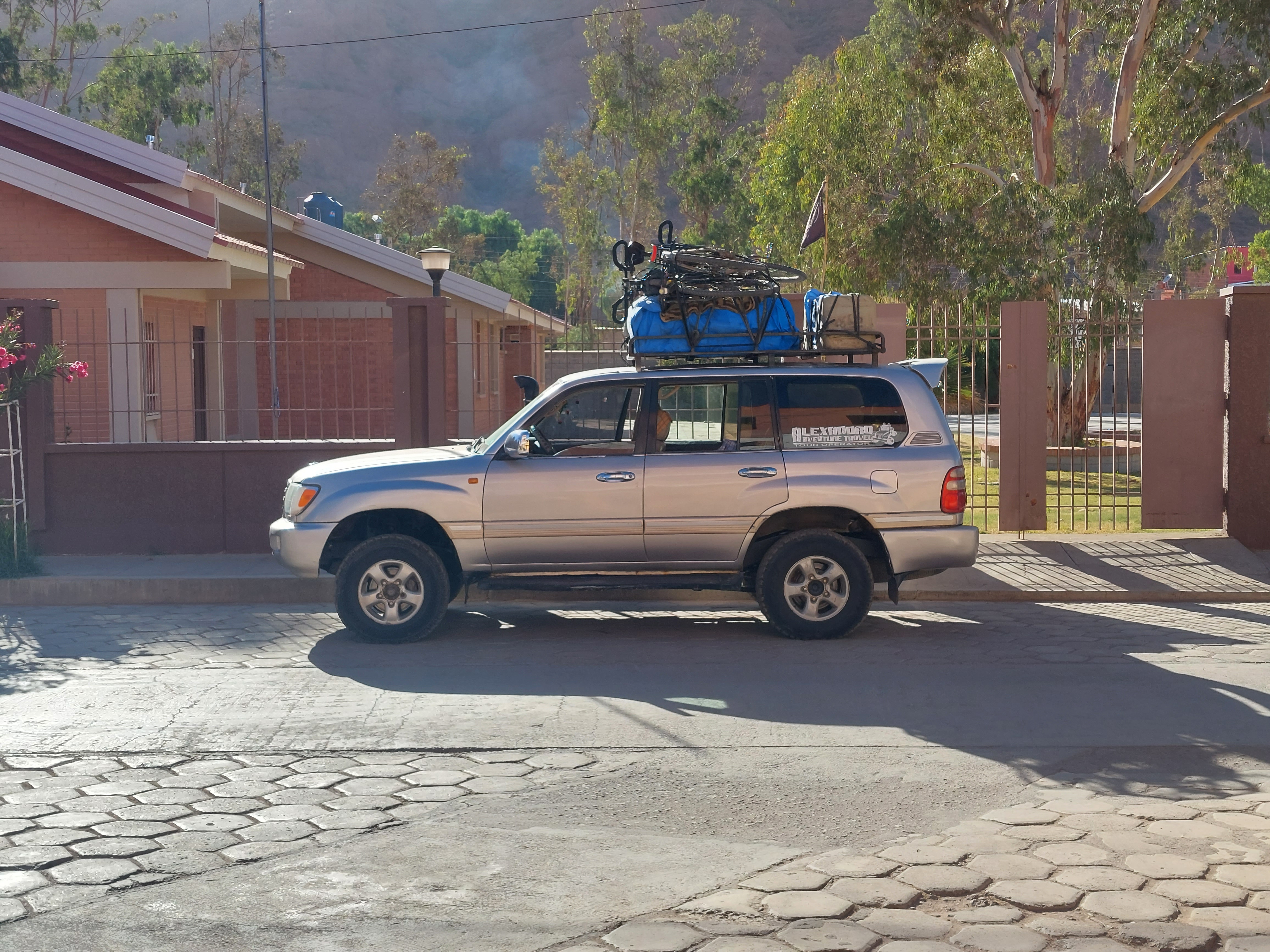 Le jour du départ arrive, et nous nous présentons à l’agence avec nos vélos et leurs sacoches bien remplies. Après avoir arrimé tout notre matériel sur le toit du véhicule, nous nous mettons en route, prêts à en découdre avec le Sud-Lipez. Hélas, nous sommes très vite rattrapés par un souci mécanique, non pas de nos vélos, mais cette fois-ci de notre voiture ! L’embrayage ne fonctionne plus, alors un passage chez le mécanicien s’impose et nous en profitons pour faire connaissance avec les autres touristes présents dans notre excursion. Après plusieurs heures de réparations, nous pouvons remonter à bord de notre 4×4 et partons à l’assaut des lagunes.