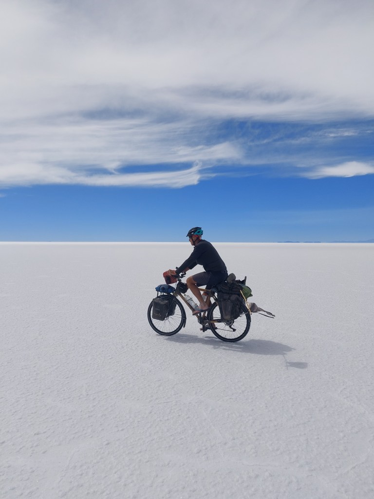 Nous rejoignons tant bien que mal la sortie du Salar d’Uyuni et nous dirigeons vers un hôtel afin d’y passer une bonne nuit de sommeil, mais surtout de s’offrir une bonne douche pour nous et nos vélos remplis de sel ! Le lendemain, nous rejoignons la ville d’Uyuni en empruntant une route asphaltée, nous procurant une sensation de confort oubliée depuis bien longtemps ! De là, un bus nous mènera jusqu’à La Paz où nous retrouverons la civilisation, des fruits et légumes frais, et on l’espère un lot de nouvelles anecdotes à partager !