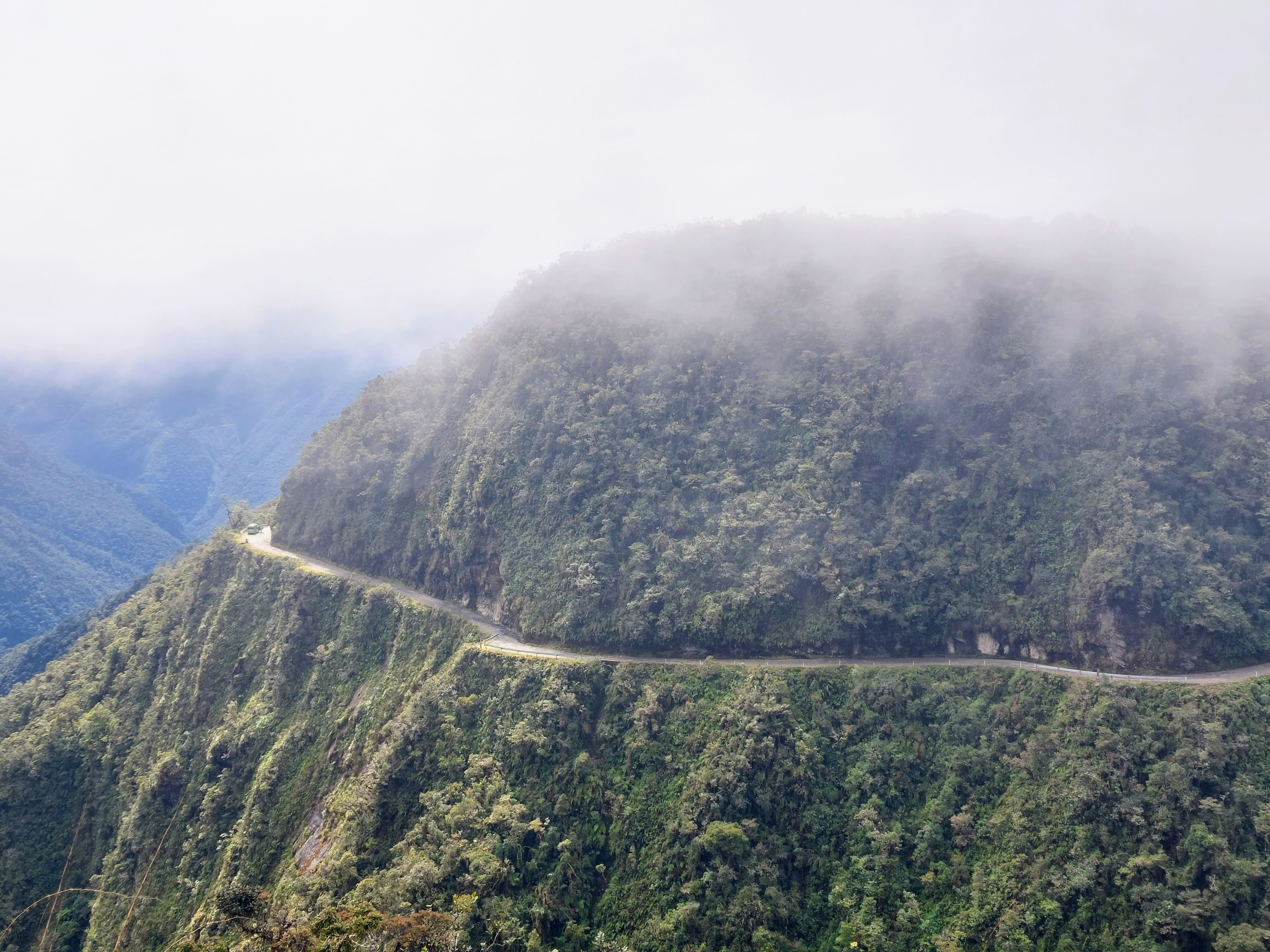 Mais afin de garder la forme, nous planifions également une journée de vélo à parcourir la fameuse « Route de la Mort », itinéraire VTT partant de l’altiplano, à plus de 4500 mètres et descendant jusqu’à près de 2000 mètres d’altitude, où la végétation verdoyante donne des airs de jungle. Pour cette journée, nous nous offrons le luxe de troquer nos vélos rigides contre des VTT tout suspendus et dévalons avec plaisir et confort la périlleuse route à flanc de falaise, dans un cadre naturel exceptionnel permettant de faire un break avec le chaos de la ville.