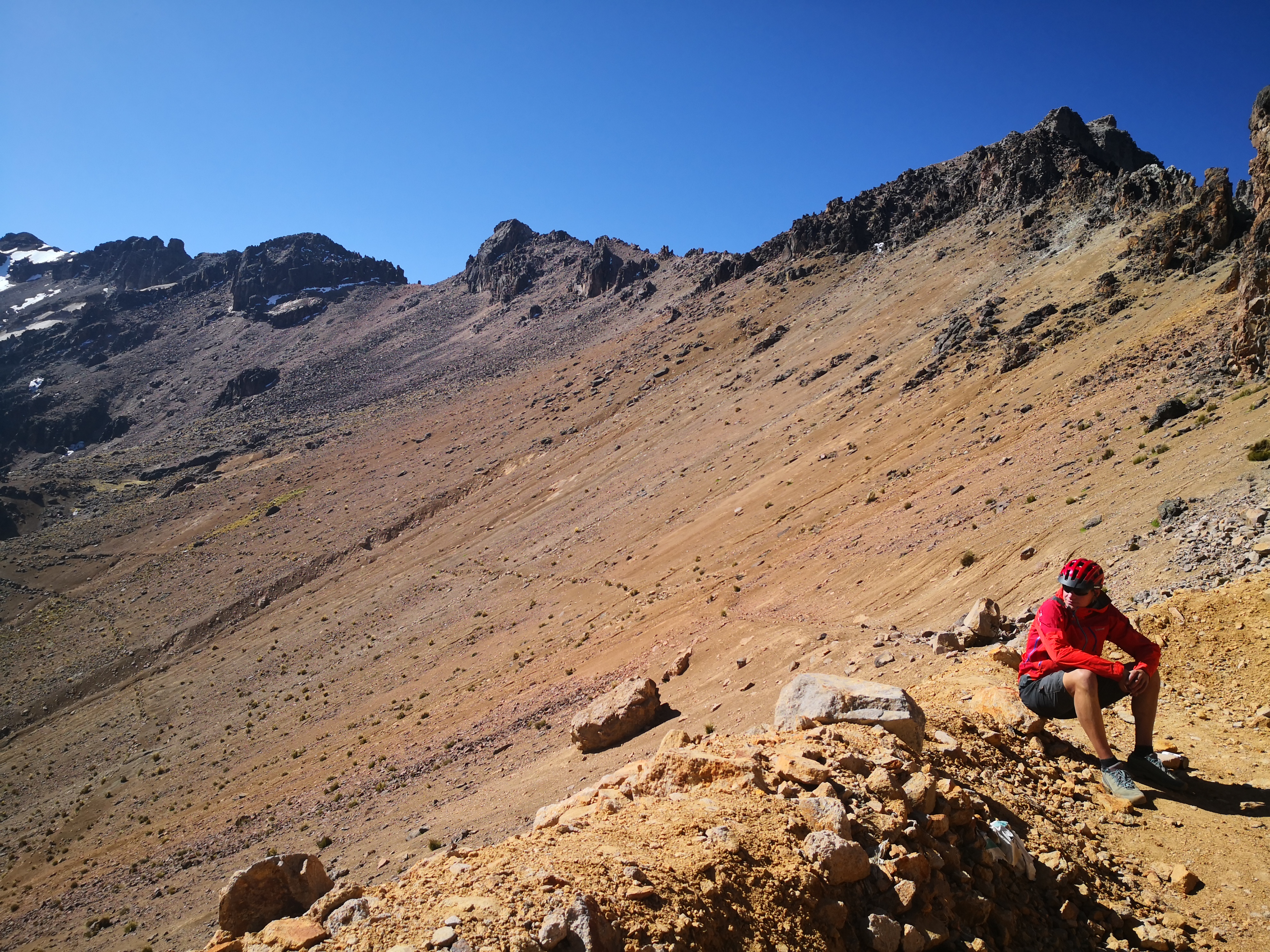 Finalement, au bout d’une heure d’effort intense, la récompense arrive. Le sommet ! Le cœur tambourinant encore dans notre cage thoracique, le souffle court, nous jetons un dernier coup d’œil à cette route qui nous aura proposé un énorme combat tant mental que physique, puis nous nous équipons pour la descente. Nous décidons en effet de ne pas nous éterniser au sommet, car comme souvent à de telles hauteurs, n’importe quel lieu exposé se retrouve balayé par de violentes bourrasques glaciales, faisant regretter chaque seconde supplémentaire passée en short-sandales.