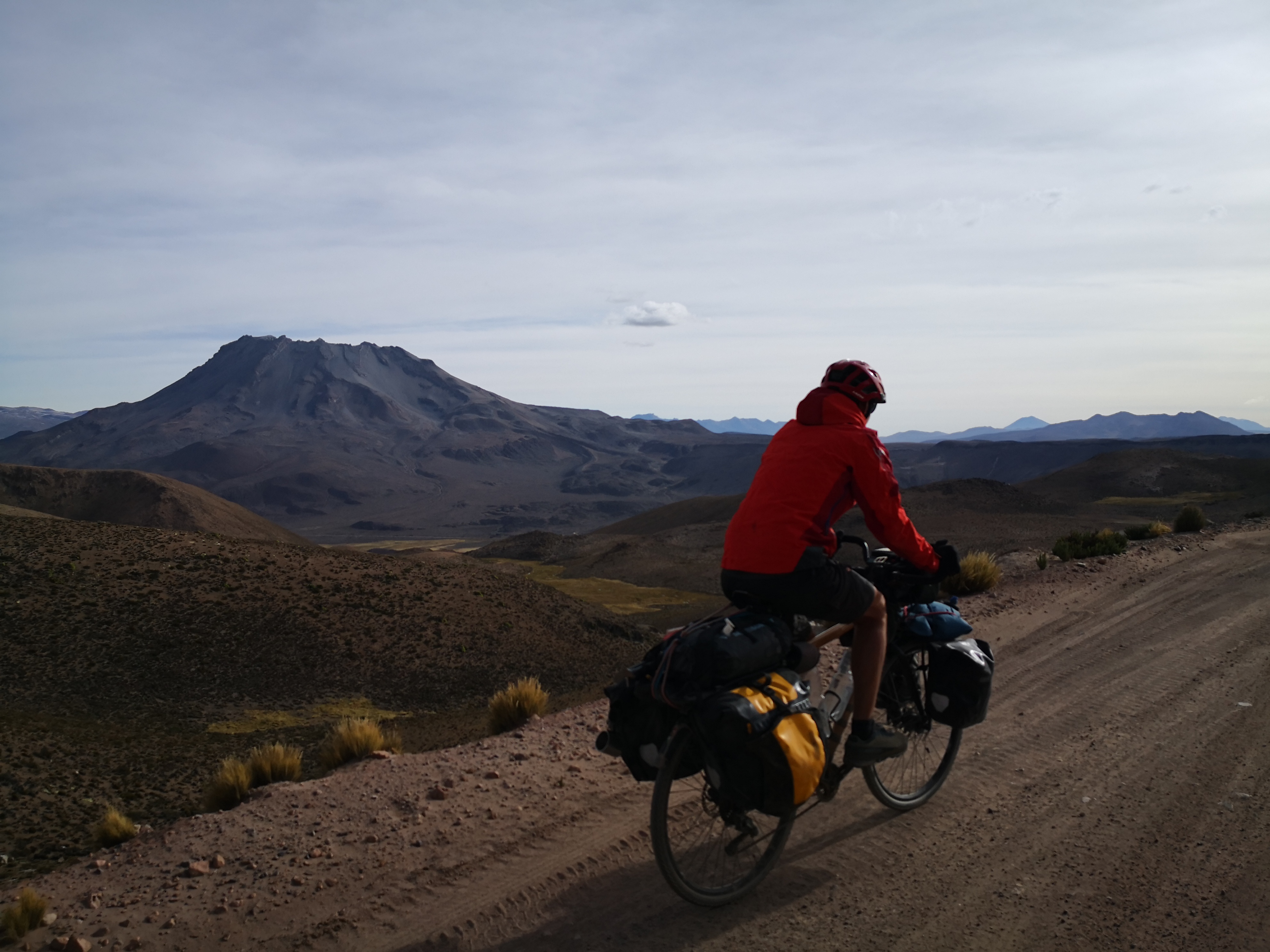 A Arequipa, nous trouvons un atelier mécanique pouvant remettre sur pied nos vélos, bien secoués par la trocha péruvienne de ces derniers jours. Pendant ce temps, en plus de s’offrir quelques petits plaisirs culinaires – la ville étant réputée pour sa gastronomie – nous planifions déjà notre prochaine aventure : l’ascension du volcan Chachani, culminant à plus de 6000 mètres ! Nous partons alors avec un guide et trois compagnons d’aventure, et après une première journée de 4×4 et de marche toute tranquille, nous établissons notre camp de base à plus de 5000 mètres.