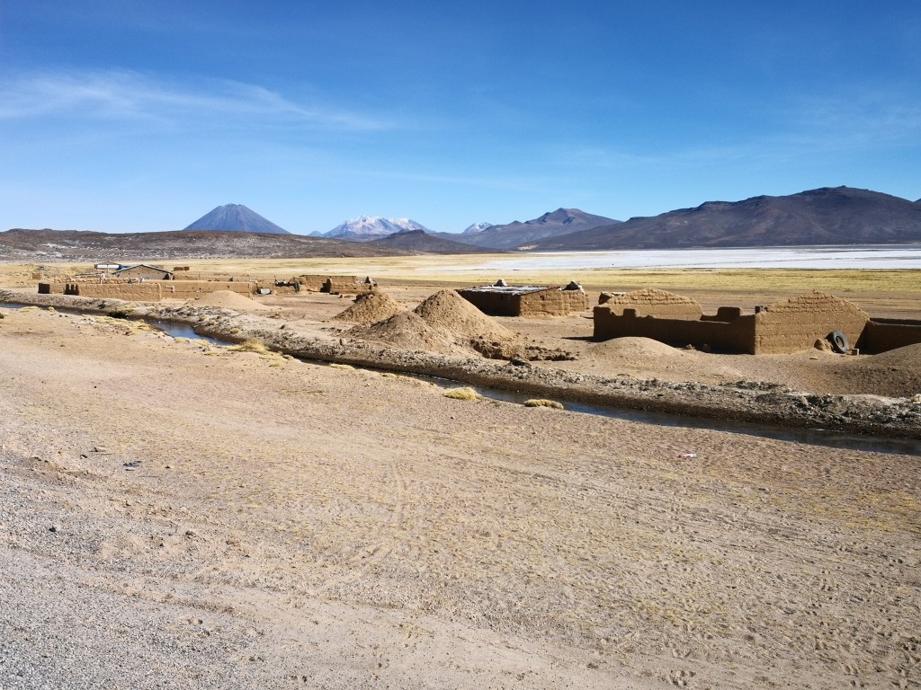 Après environ quinze heures passées sous la tente, nos batteries sont à nouveau pleines et nous nous mettons en selle pour rejoindre la région de Laguna de Salinas, lieu touristique de la région d’Arequipa. Ce jour-là, le vent est particulièrement fort et matinal, et la tôle ondulée sur la route particulièrement inconfortable. L’avancée est pénible, si bien qu’à la pause de midi, lorsqu’un policier nous offre l’hébergement dans sa caserne, nous n’hésitons pas un instant à parquer nos vélos jusqu’au lendemain. Mais si la gentillesse et la générosité des policiers de l’établissement sauront nous toucher, notre séjour avec eux sera pâli par les températures glaciales de l’endroit, que l’on pourrait sans exagération qualifier de Sibérie sud-américaine ! En témoignent l’interminable nuit passée sans trouver le sommeil en raison d’orteils frigorifiés ainsi que l’eau de la cuvette des toilettes gelée au petit matin, et ce même si les infrastructures sont protégées par quatre murs et un toit !