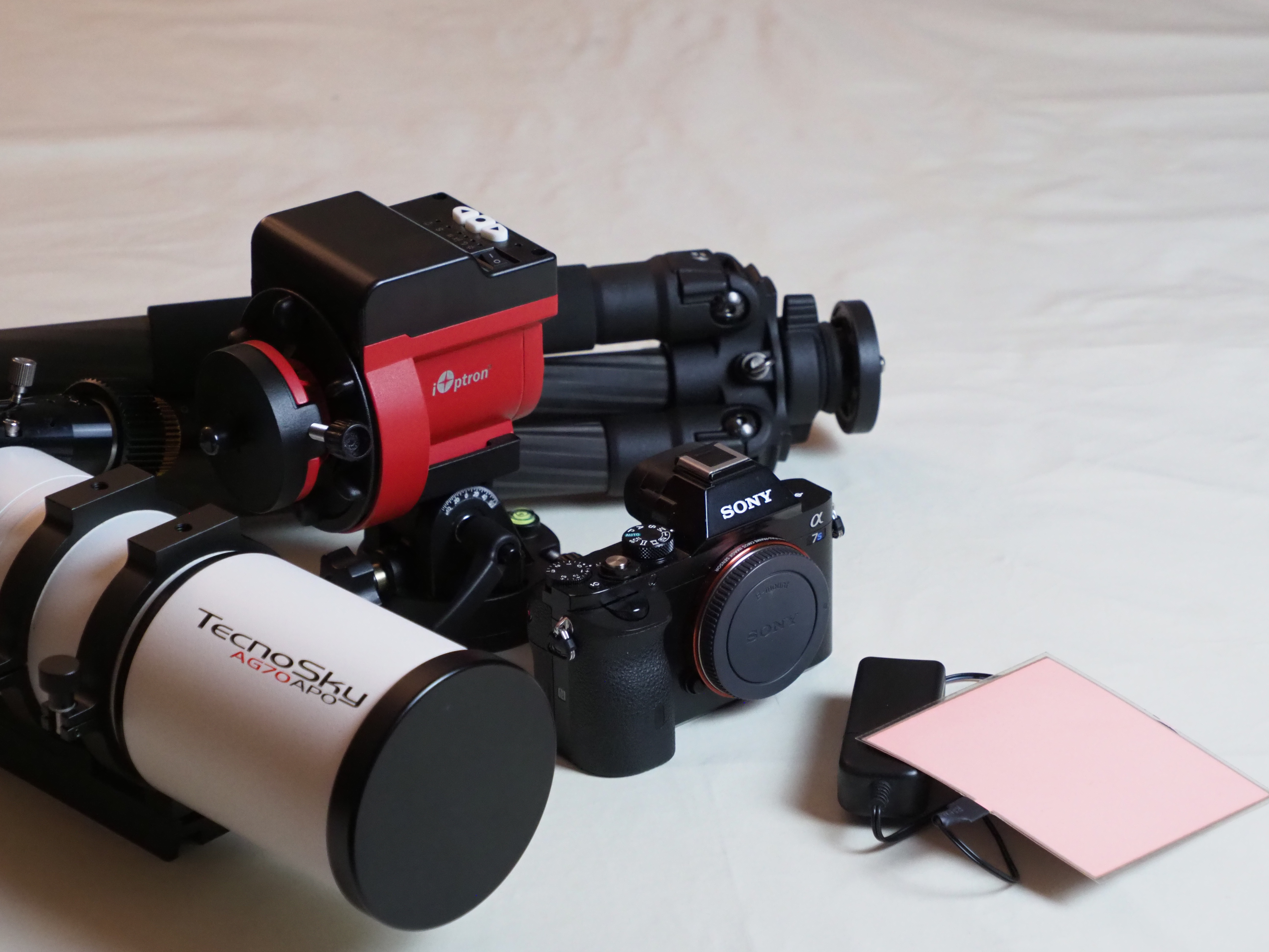 La sélection de notre matériel astrophotographique n’a pas été une mince affaire. Lorsque l’idée de notre projet est née, aucun membre de l’équipe n’était expérimenté dans le domaine de la photographie, encore moins de l’astrophotographie. Nous avons donc développé nos connaissances en lisant de nombreux articles sur internet, et dévoré un nombre incalculable de vidéos YouTube. Peu à peu, nous y voyions plus clair dans ce nouvel environnement technique et rigoureux. Cependant, impossible de trouver des retours d’expérience d’astrophotographes amateurs à vélo… Un tel amalgame est-il possible ? La fragilité du matériel astrophotographique peut-elle supporter les vibrations et les chocs des pistes cyclables ? Ces questions restent en suspens, et nous aurons la réponse une fois nos premiers kilomètres avalés sur le continent sud-américain. Nous décidons tout de même de tenter ce pari ambitieux, et établissons donc une liste de critères importants qui nous guiderons dans notre sélection de matériel. Légèreté, compacité et solidité seront les mots d’ordre. De plus, au vu de nos faibles connaissances de base et du temps à disposition pour se faire la main avec nos acquisitions, nous misons également sur la simplicité d’utilisation. Exit donc les systèmes autoguidés, trop encombrants, les capteurs CCD, trop compliqués, et les optiques à grande focale, trop lourdes et volumineuses.