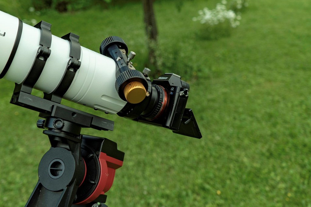 Nous nous sommes orientés vers ce boîtier de la marque Sony, qui bénéficie d’une excellente réputation dans le milieu de l’astrophotographie notamment en raison de la grande taille de ses pixels, qui augmente sa capacité à collecter la lumière. Ce boîtier est parfaitement adapté à la photographie du ciel profond ainsi que de la Voie Lactée. Il présente également une superbe qualité de photo diurne, et ses performances en vidéo sont très intéressantes. C’est donc pour sa polyvalence, sa compacité et ses performances que nous nous sommes équipés de ce modèle.