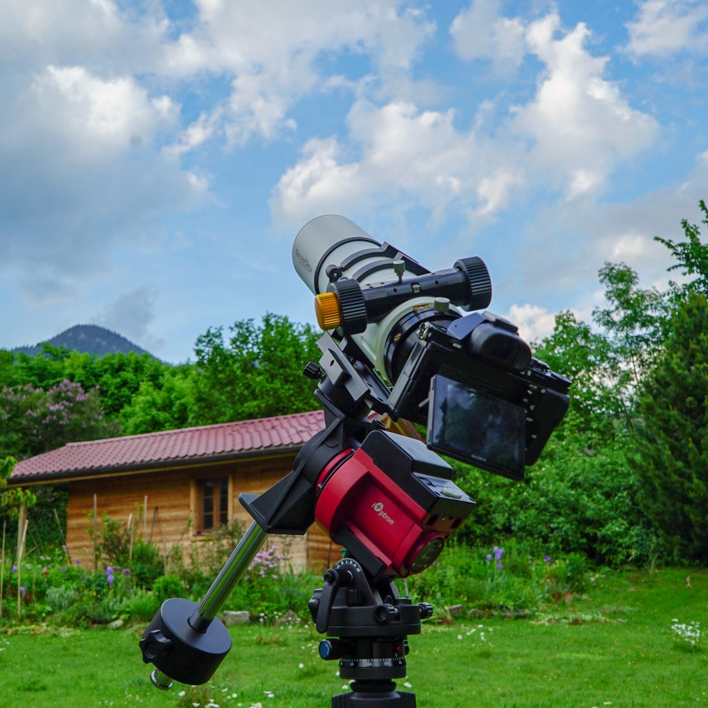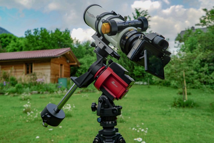 Cette monture compacte et robuste complète idéalement notre setup, et nous garantit de pouvoir soutenir le poids de notre réfracteur et du boîtier. L’énorme avantage de cette monture est qu’elle est équipée d’une caméra embarquée destinée à faciliter la mise en station. Cette caméra ainsi que son logiciel dédié permettent de viser précisément le Nord (ou le Sud) en se repérant grâce aux étoiles présentes dans le champ de vue de la caméra. Cette option nous est très pratique dans la mesure où nous allons utiliser notre matériel dans l’hémisphère Nord et Sud, et qu’une mise en station « conventionnelle » aurait été très compliquée.